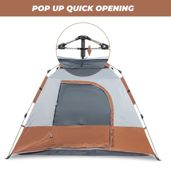 240*240*150cm Spring Quick Opening Four-Person Family Tent Camping Tent Brown