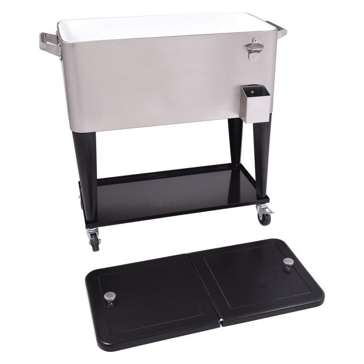 80 Quart Patio Rolling Stainless Steel Ice Beverage Cooler