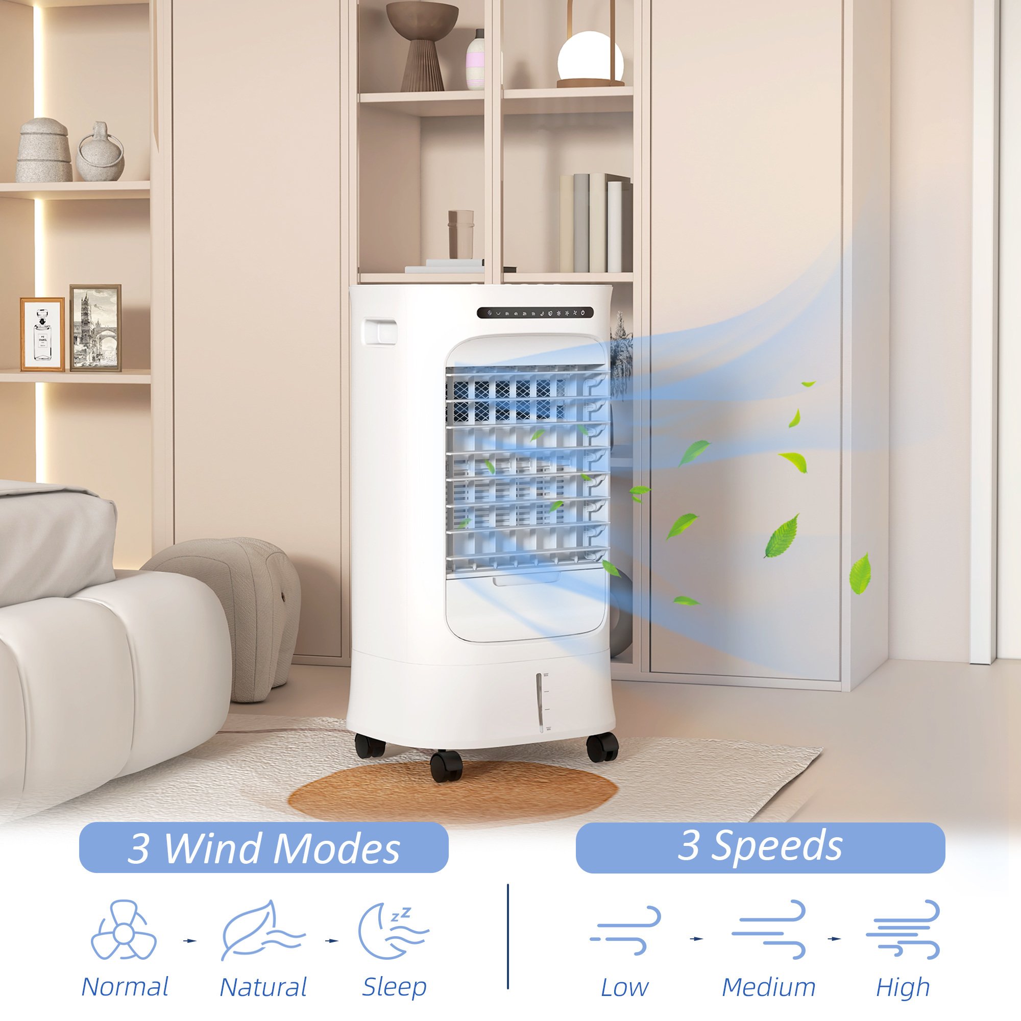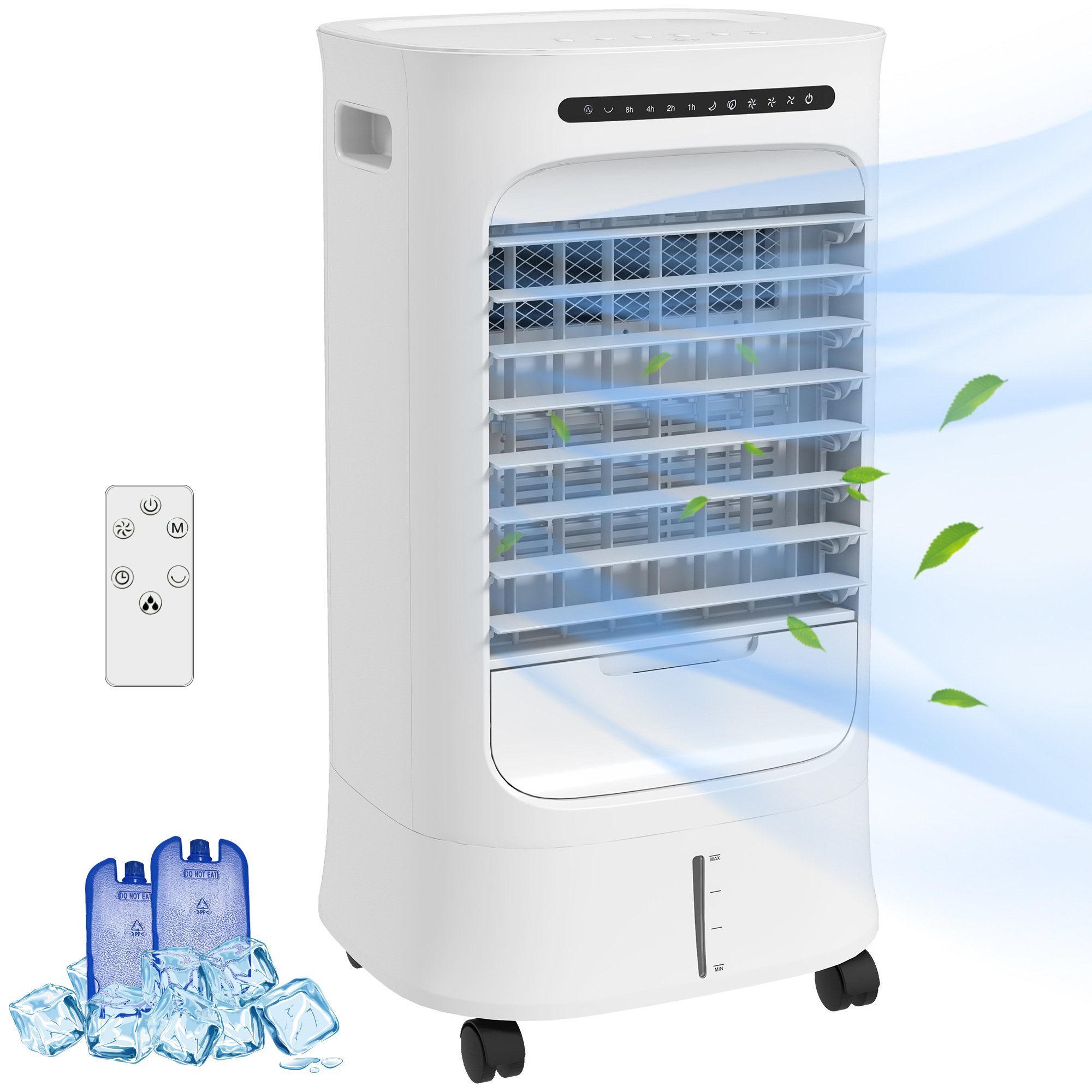 HOMCOM 29" Evaporative Air Cooler with Ice Packs, 3-In-1 Ice Cooling Fan, Portable Swamp Cooler with 2.6 Gal Water Tank, Timer, Oscillating, Remote, f