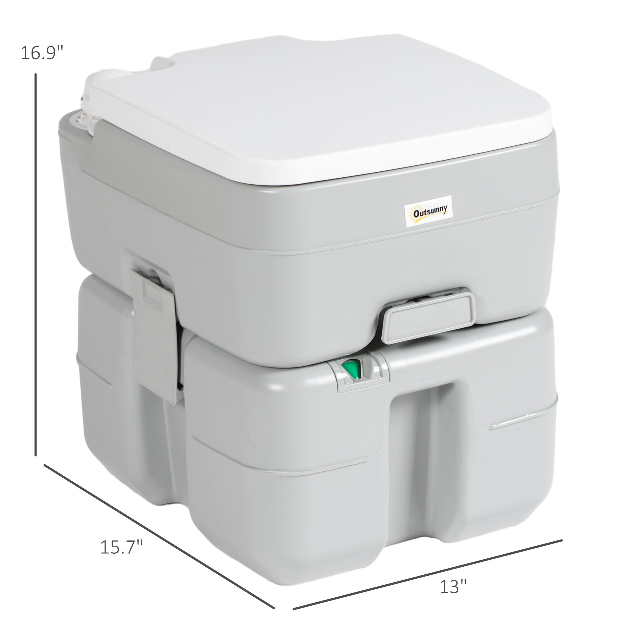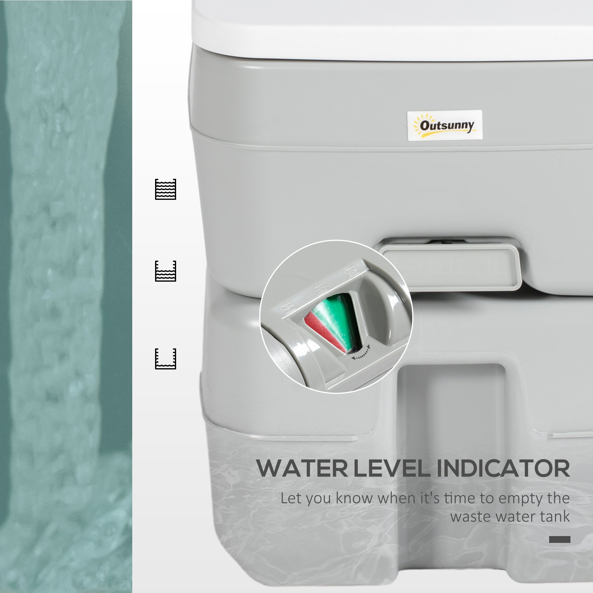 Outsunny Portable Toilet for Adults 5.3 Gallon, Porta Potty with Level Indicator, T-Type Water Outlets and Anti-Leak Handle Pump for Camping, Boating,