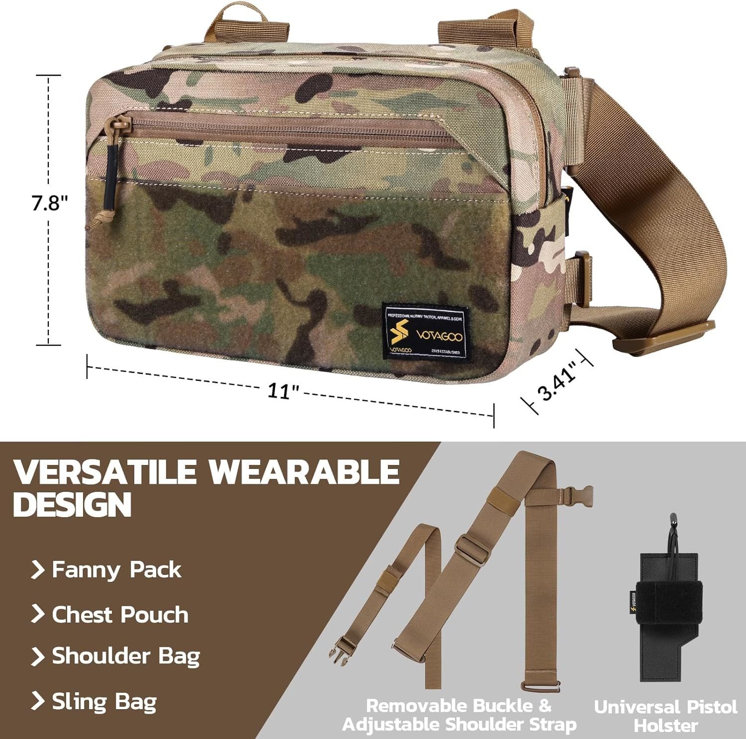 ️PREMIUM MATERIALS- The VOTAGOO combat fanny pack is well-made from water-resistant 1000D nylon and featuring a robust reinforced buckle. This rugged and durable design ensures optimal protection and reliability for all your outdoor adventures.