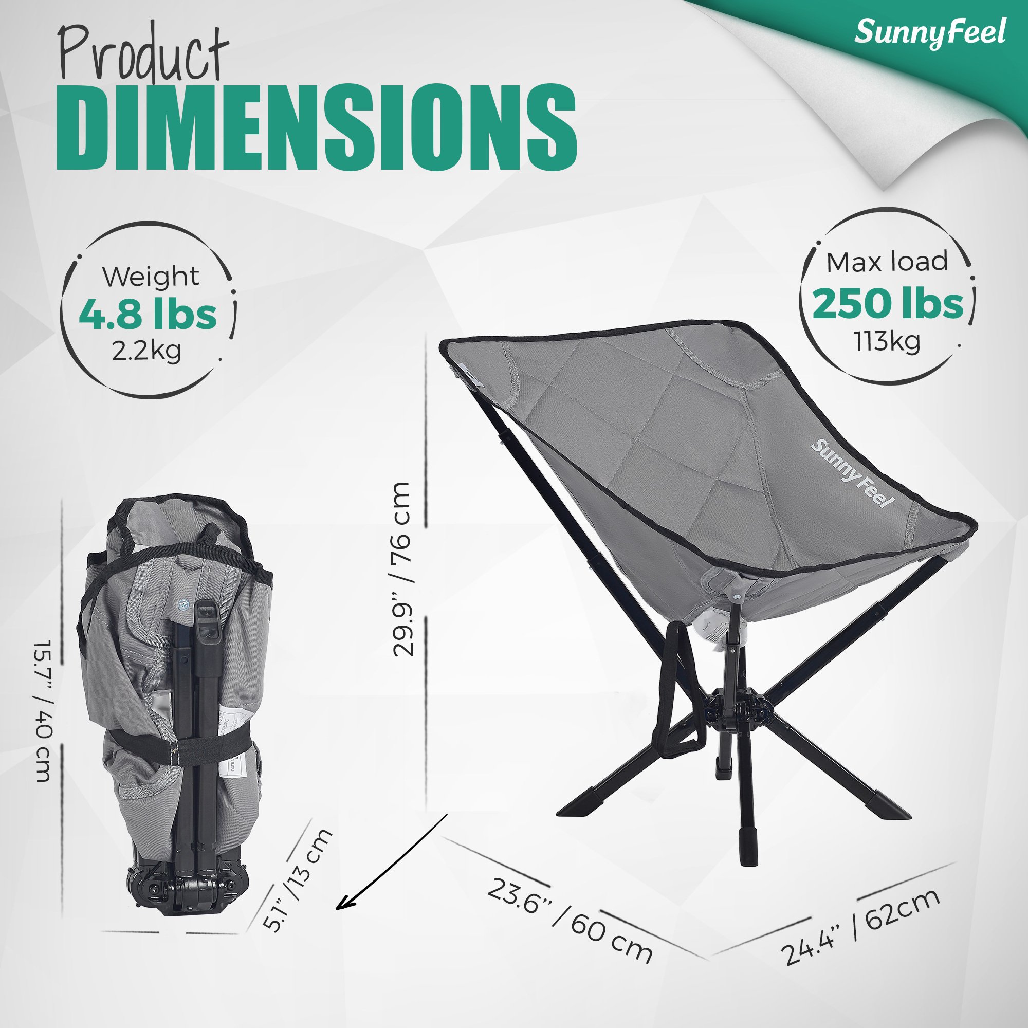 Comfy Comfy: SunnyFeel Ultralight Folding Camping Chair is your best partner to help you to relax and enjoy your journey.