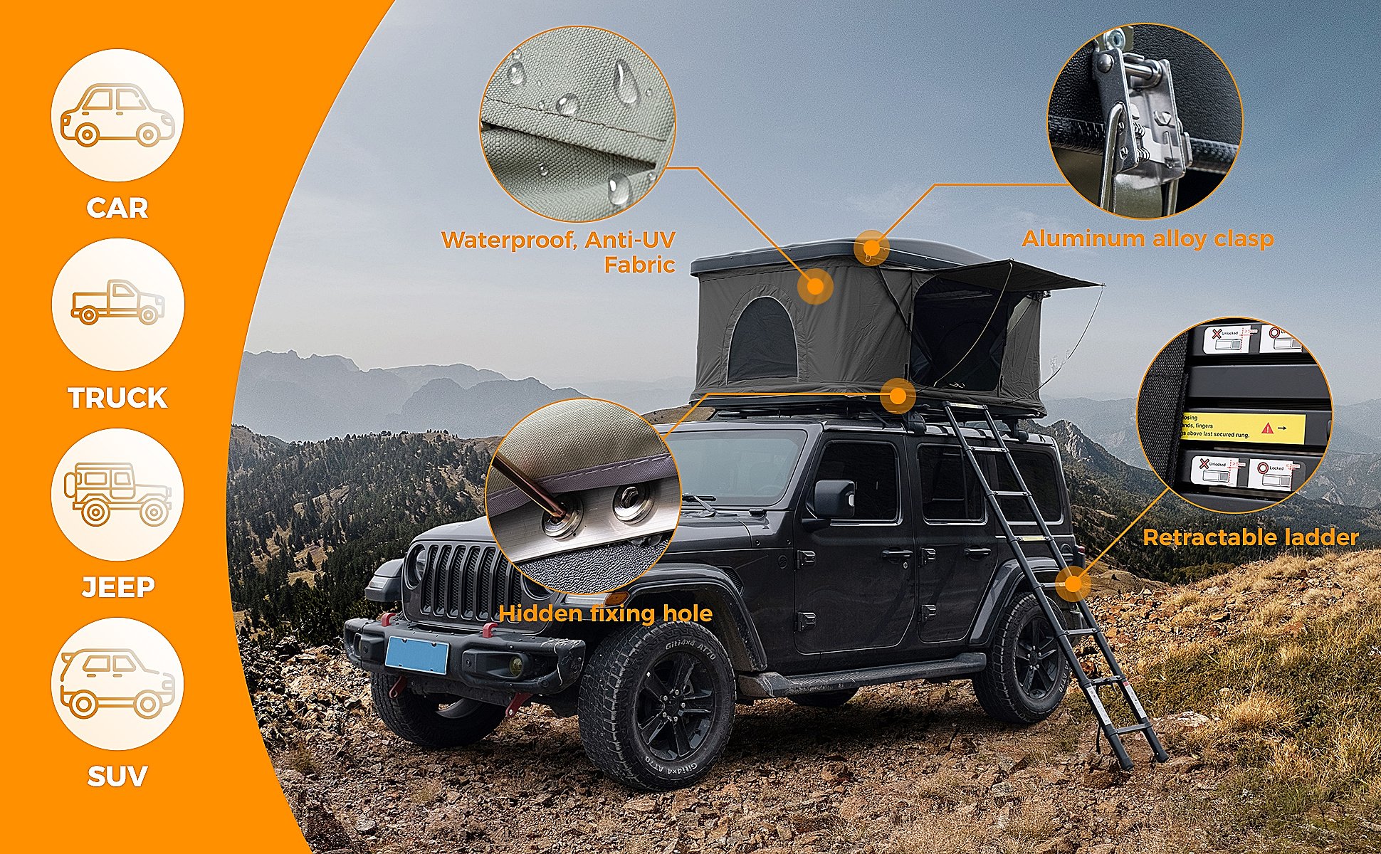 1.Fits Most Vehicles Equipped With Cross Bars and Roof Rails, Make Your Camping and Overlanding Adventures More Comfortable and Convenient