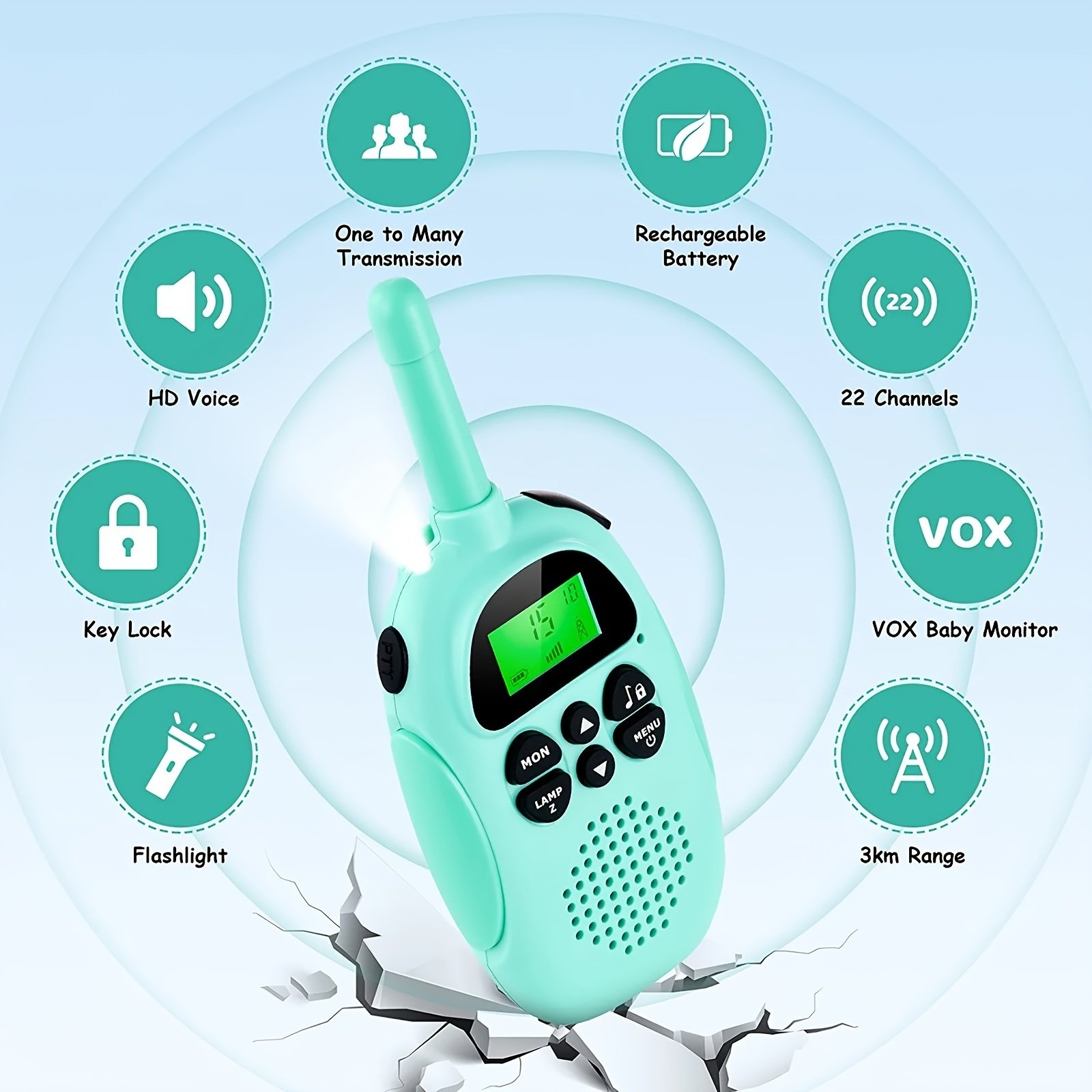 2pcs ZILIEEN Rechargeable Kids Walkie Talkies With 3km Range; 2 Way Radio For Outside; Camping; Hiking