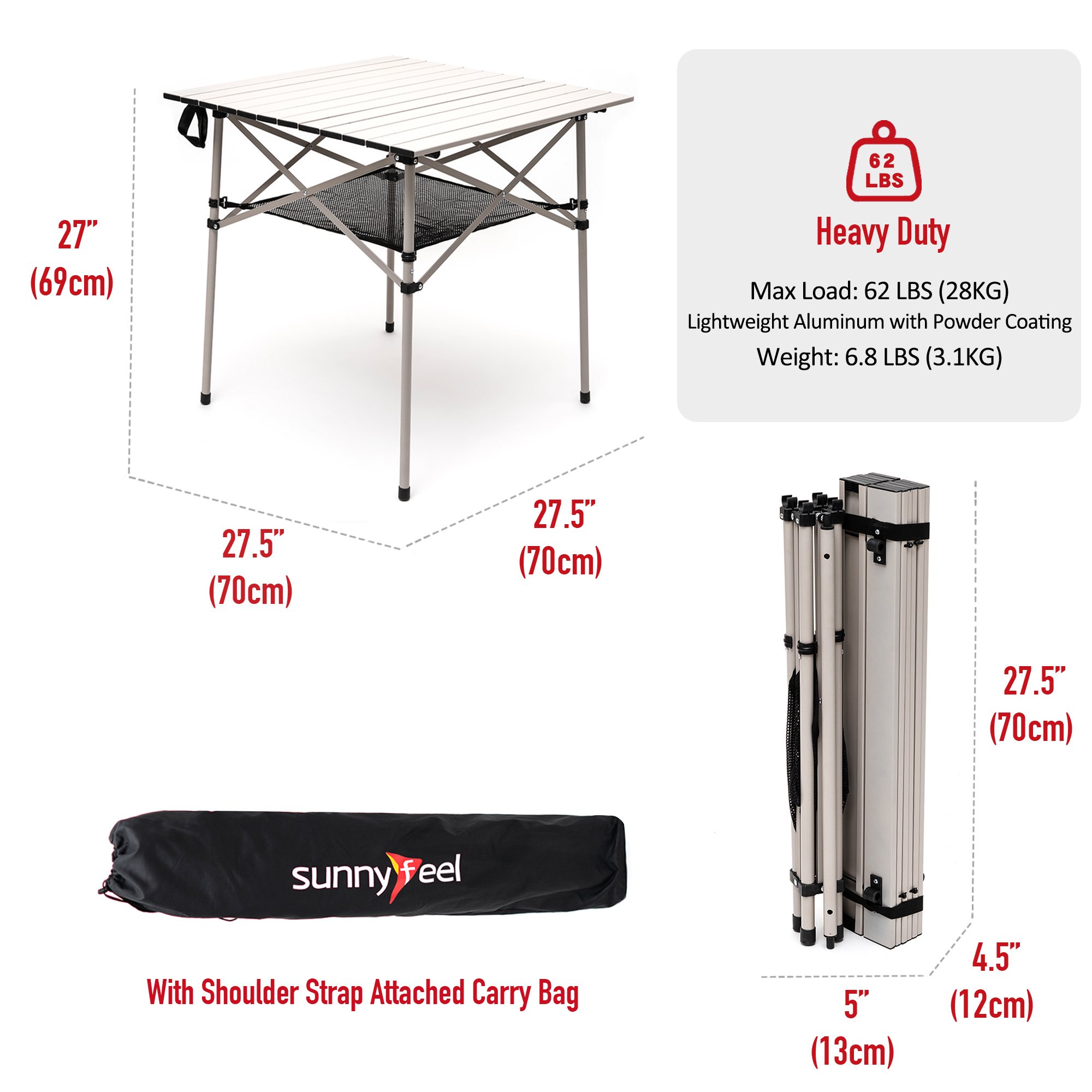 Home > SUNNYFEEL Outdoor Folding Table | Lightweight Compact Aluminum Camping Table, Roll Up Top 4 People Portable Camp Square Tables with Carry Bag for Picn