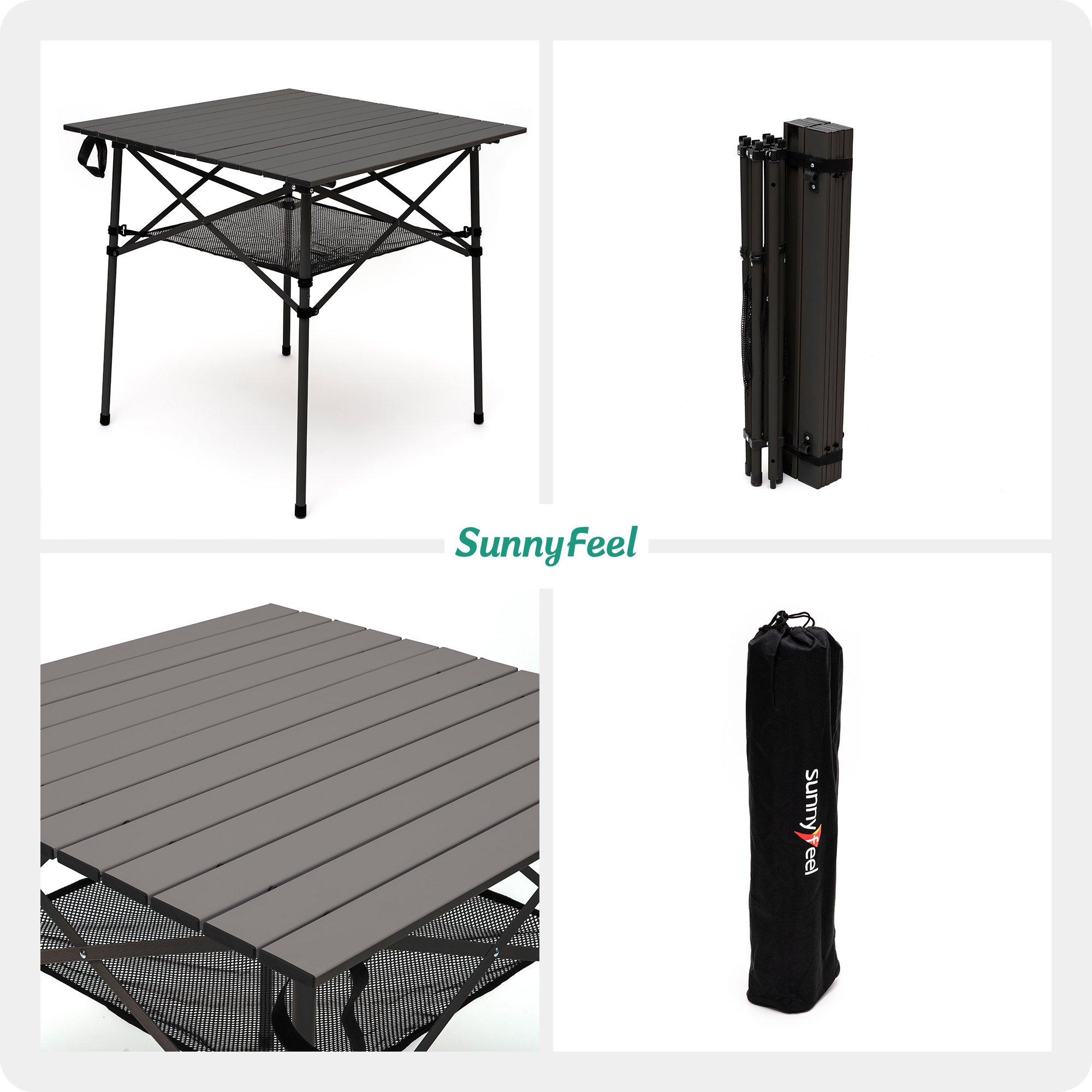 Home > SUNNYFEEL Outdoor Folding Table | Lightweight Compact Aluminum Camping Table, Roll Up Top 4 People Portable Camp Square Tables with Carry Bag for Picn