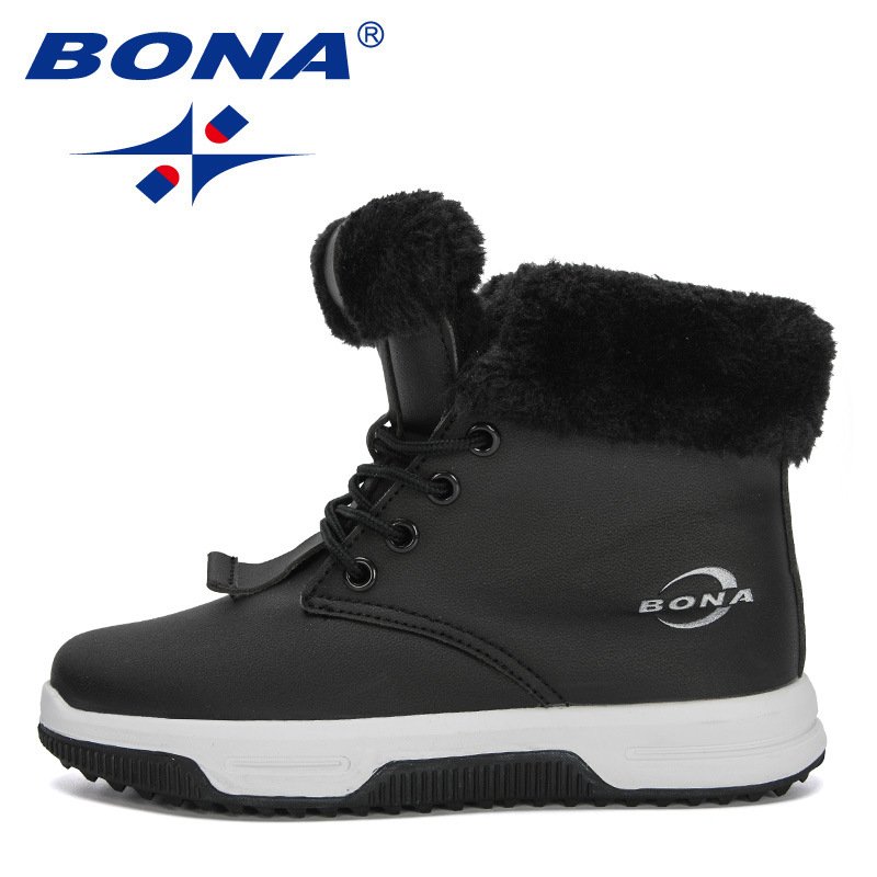 BONA 2020 New Designers High Top Snow Boots Children Winter Thick Plush Warm Non-Slip Boots Big Girls Boys Hiking Footwear Kids