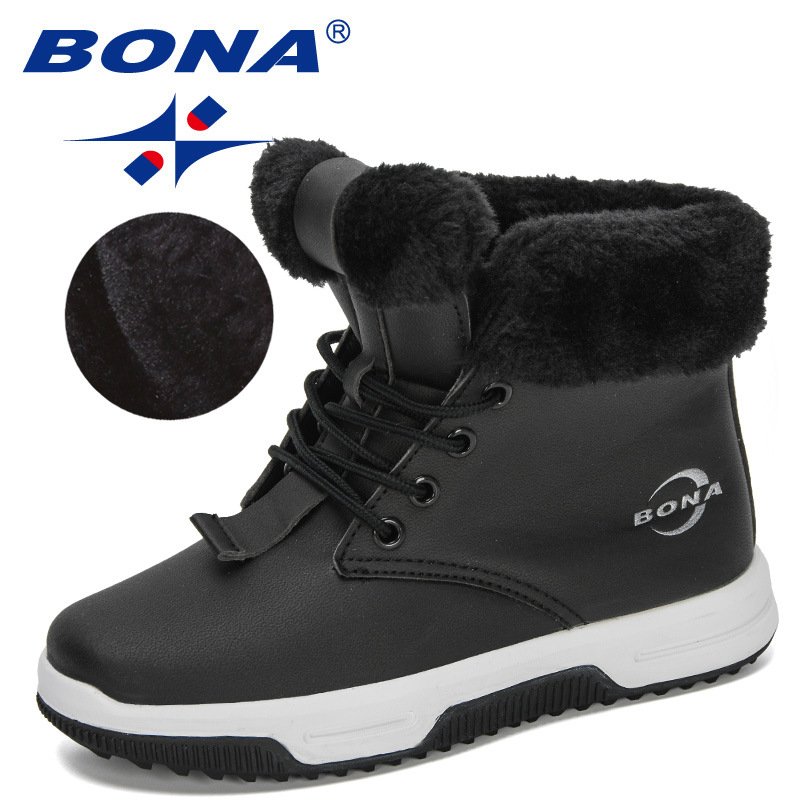 BONA 2020 New Designers High Top Snow Boots Children Winter Thick Plush Warm Non-Slip Boots Big Girls Boys Hiking Footwear Kids