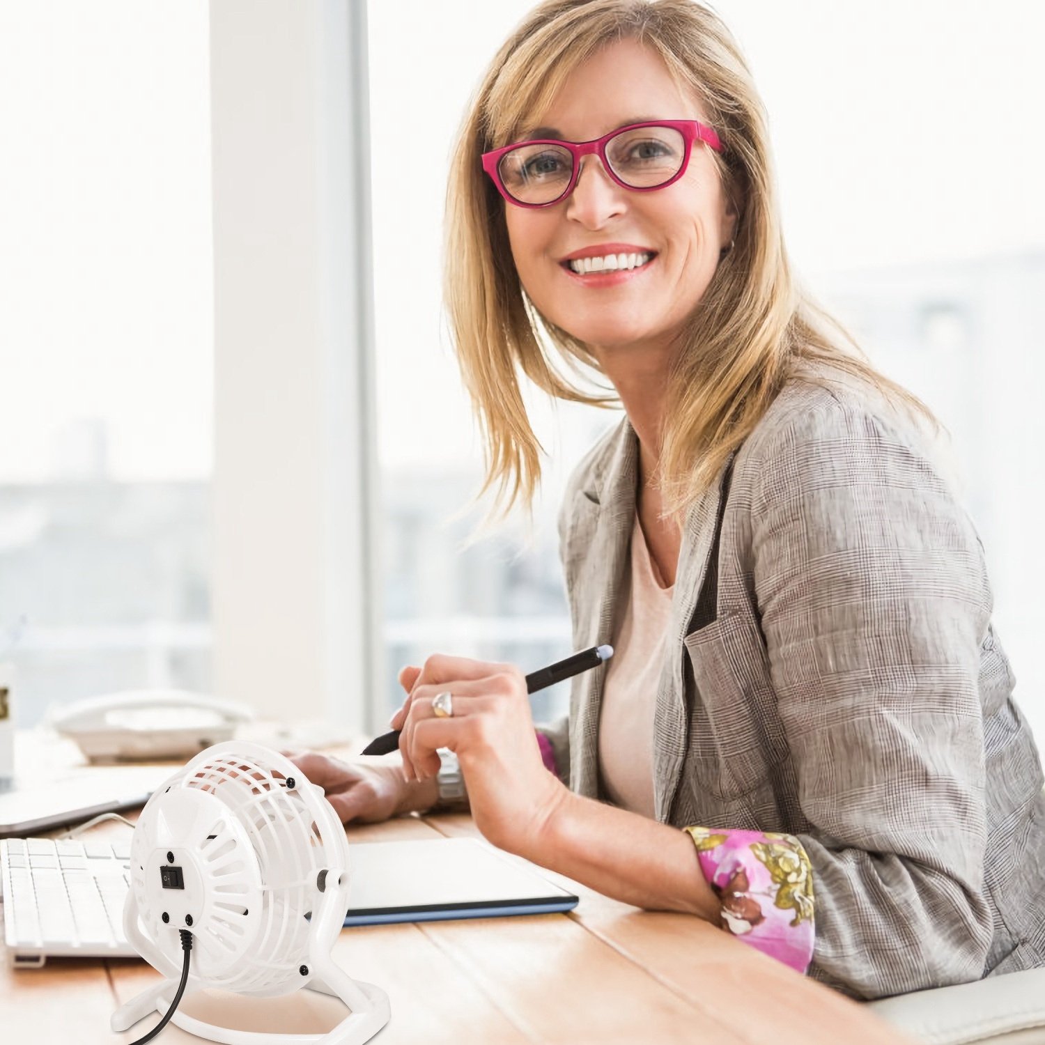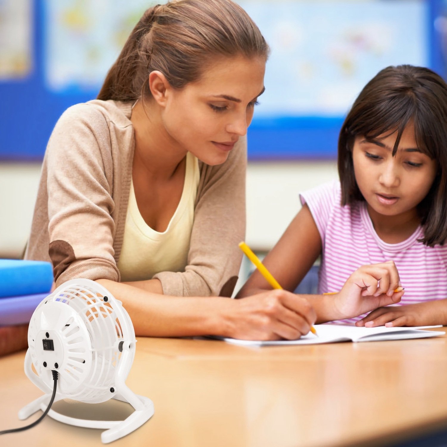 ** PORTABLE & EASY*:This 5 inch mini desk fan is able to produce soft breeze to keep you cool and relaxed. This mini fan weights only around .42 lbs for easy moving or transporting. The smart and compact design allows this mini USB table fan to be placed anywhere on the table or on any other flat surface.