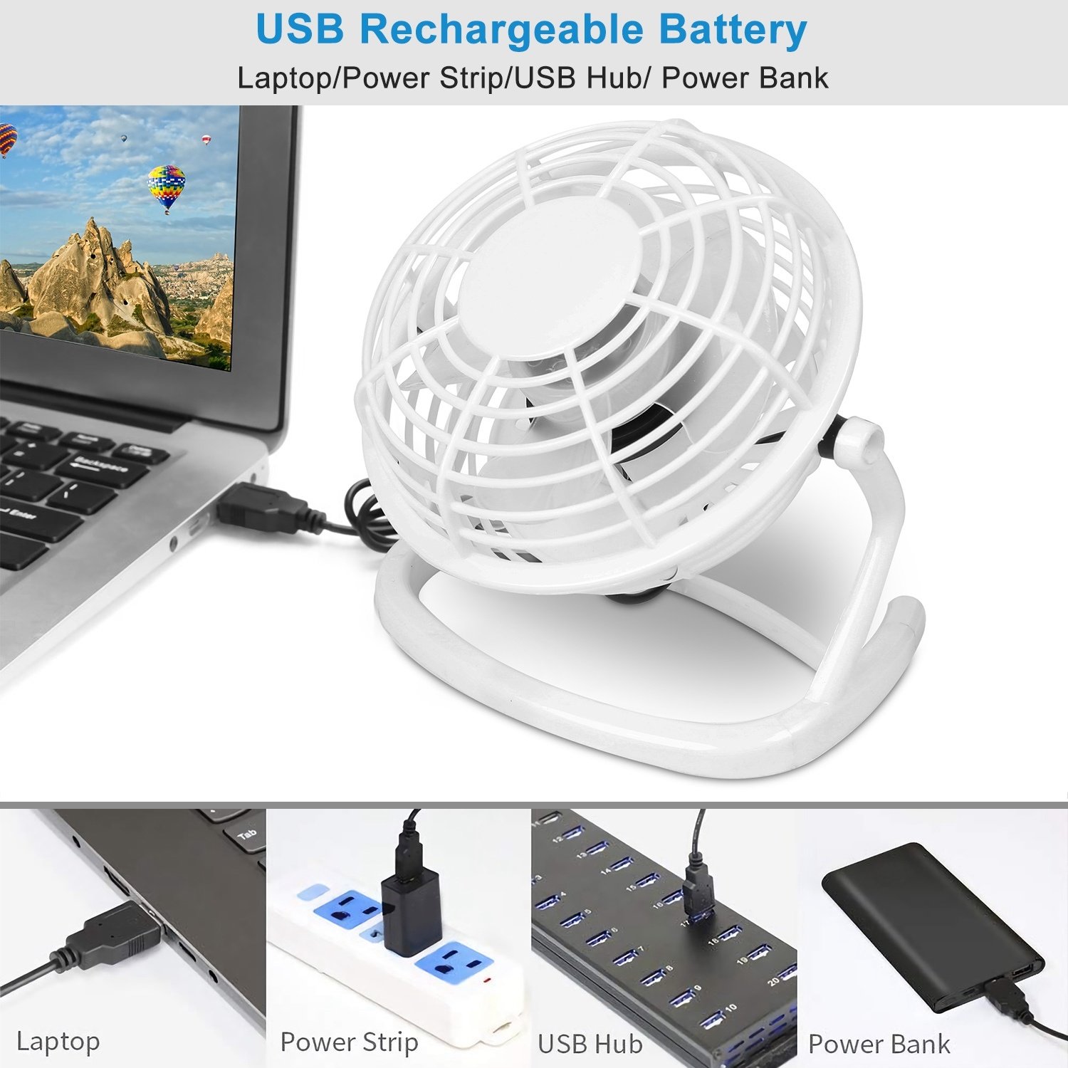 * 360°ANGLE ADJUSTMENT*:This USB mini fan can be adjusted to your preferred angle through its 360° up and down rotation. Just simply swivel the frame of the desk fan and you can enjoy the cool wind from different angles.