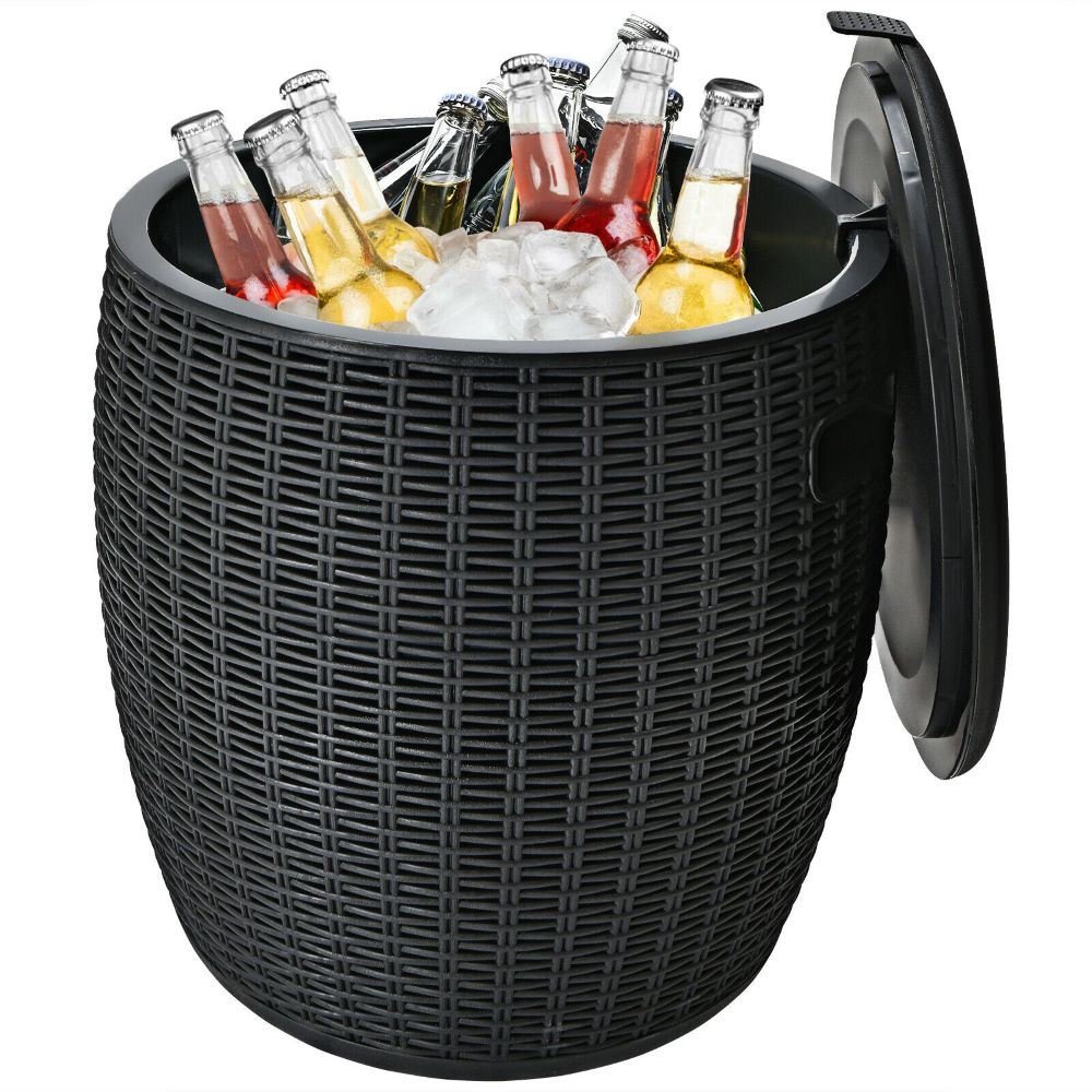 4.With its imitation rattan style, the ice cooler is suitable various outdoor activities such as pool party, barbecue, family gathering. This outdoor ice bar table combines functionality with decoration, perfectly matching your patio rattan conversation set.