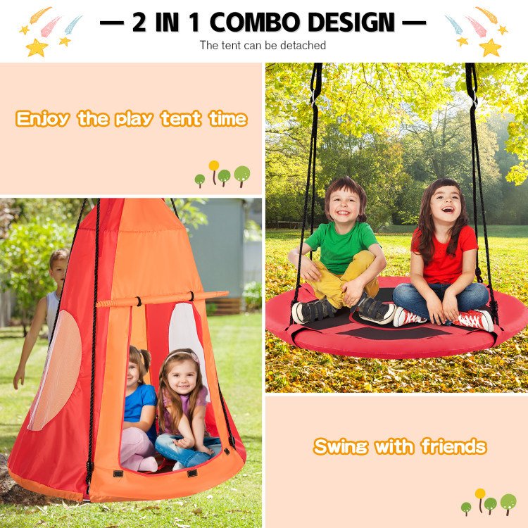 2-in-1 40 Inch Kids Hanging Chair Detachable Swing Tent