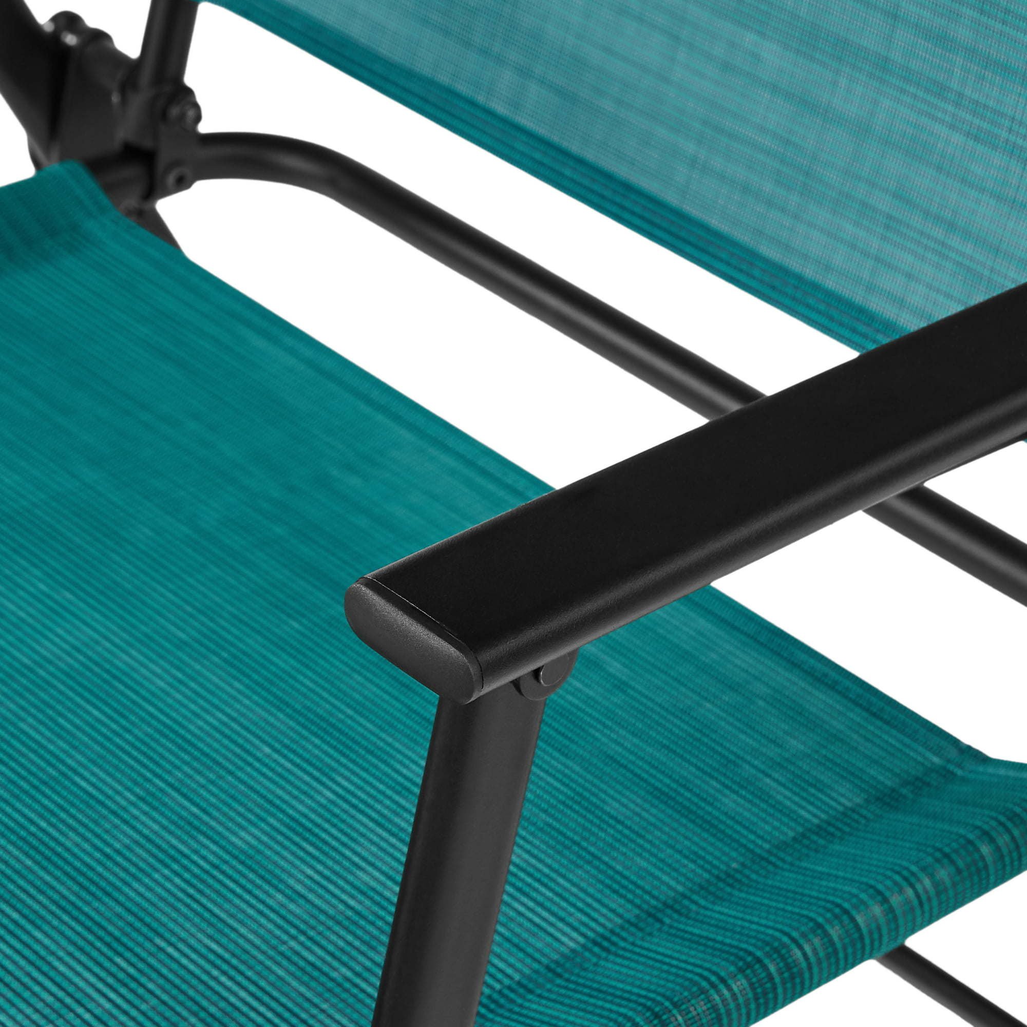 Transform any porch, patio, deck, or backyard into a casual conversation area by adding stylish seating with the Steel and Sling Folding Outdoor Patio Armchair - Set of 2, Teal. These versatile patio armchairs feature a foldable, portable design for easy storage and transport to beaches, campgrounds, parks, and outdoor events. The seating and backing are crafted with teal, ventilated, fade-resistant sling fabric, and the lightweight-yet-sturdy, black frames are constructed of powder-coated, corrosion-resistant steel for longevity. The sleek, minimalistic look of the all-season, all-weather chairs complements most other outdoor furniture and decor. This patio armchair set is part of the outdoor furniture collection (other items sold separately) and is also available in Beige, Navy, Red, and Black. Relax peacefully, enjoy a pleasant chat with someone special, or have fun at an outdoor event with the Steel and Sling Folding Outdoor Patio Armchair - Set of 2.