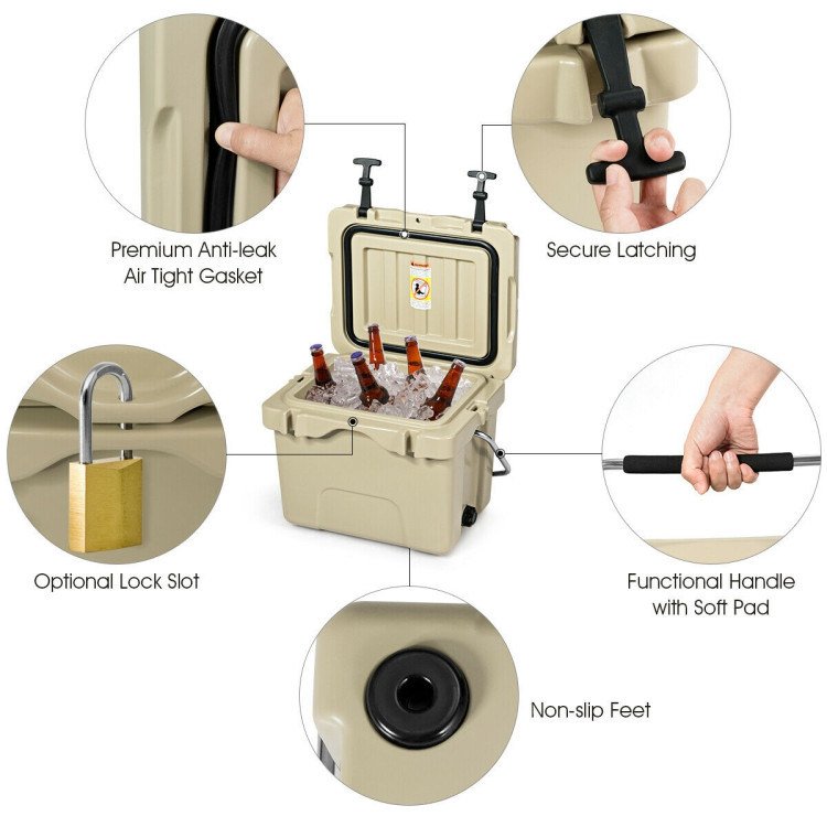 16 Quart 24-Can Capacity Portable Insulated Ice Cooler with 2 Cup Holders