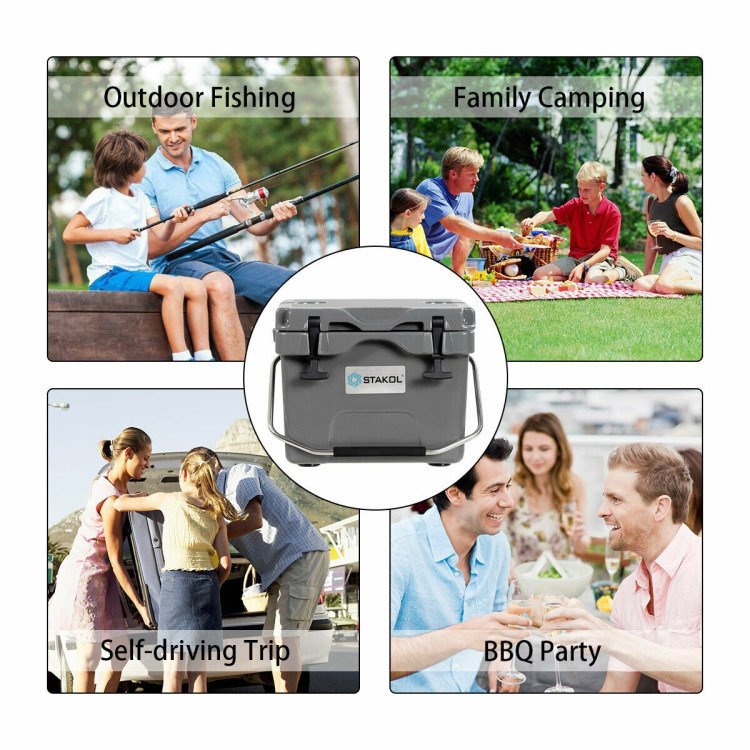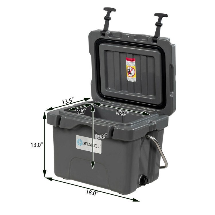 16 Quart 24-Can Capacity Portable Insulated Ice Cooler with 2 Cup Holders
