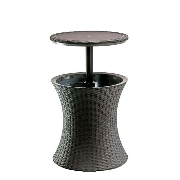 Designed with a stylish rattan look brown finish, this cool bar seamlessly blends with any outdoor decor. The top smoothly rises from 22.5 inches to 33.2 inches in overall height, providing a comfortable and adjustable surface for placing food and drinks. It also conveniently locks into place, ensuring stability and preventing accidents while your cool bar is stocked with refreshments.