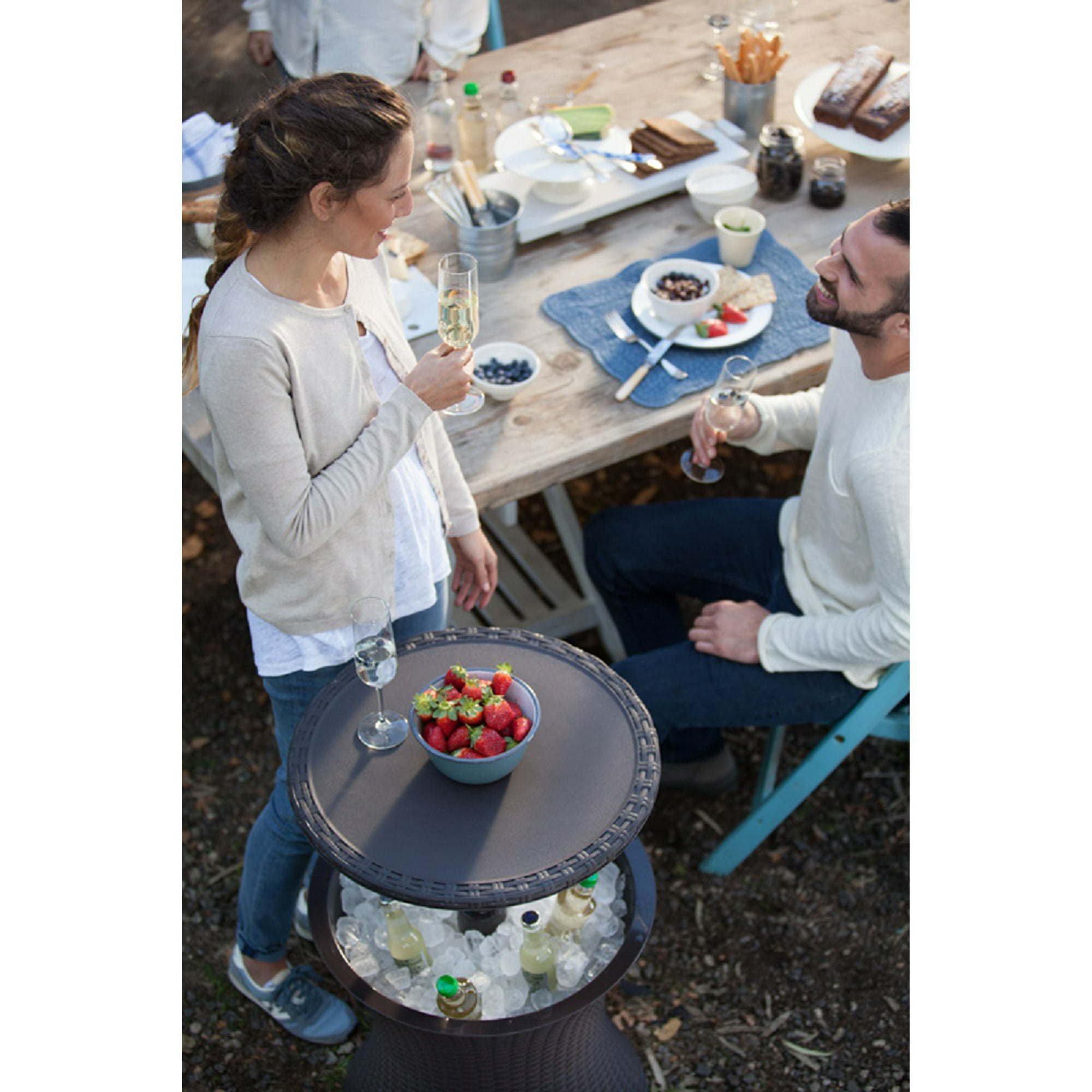 Upgrade your outdoor entertainment space with the Resin Outdoor Patio Cool Bar. It's the perfect combination of a beverage cooler and a functional table, providing convenience, style, and extra storage in one impressive package.